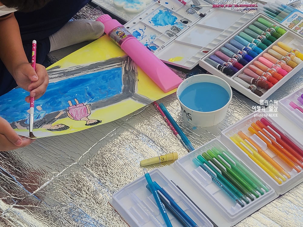 진지하게 그림 그리는 아이들의 작품을 보니 수준급 작품들도 보이고 아이디어가 넘치는 그림들도 있었다. 아이들의 상상력이 수안보 온천제와 잘 어울리는 듯!