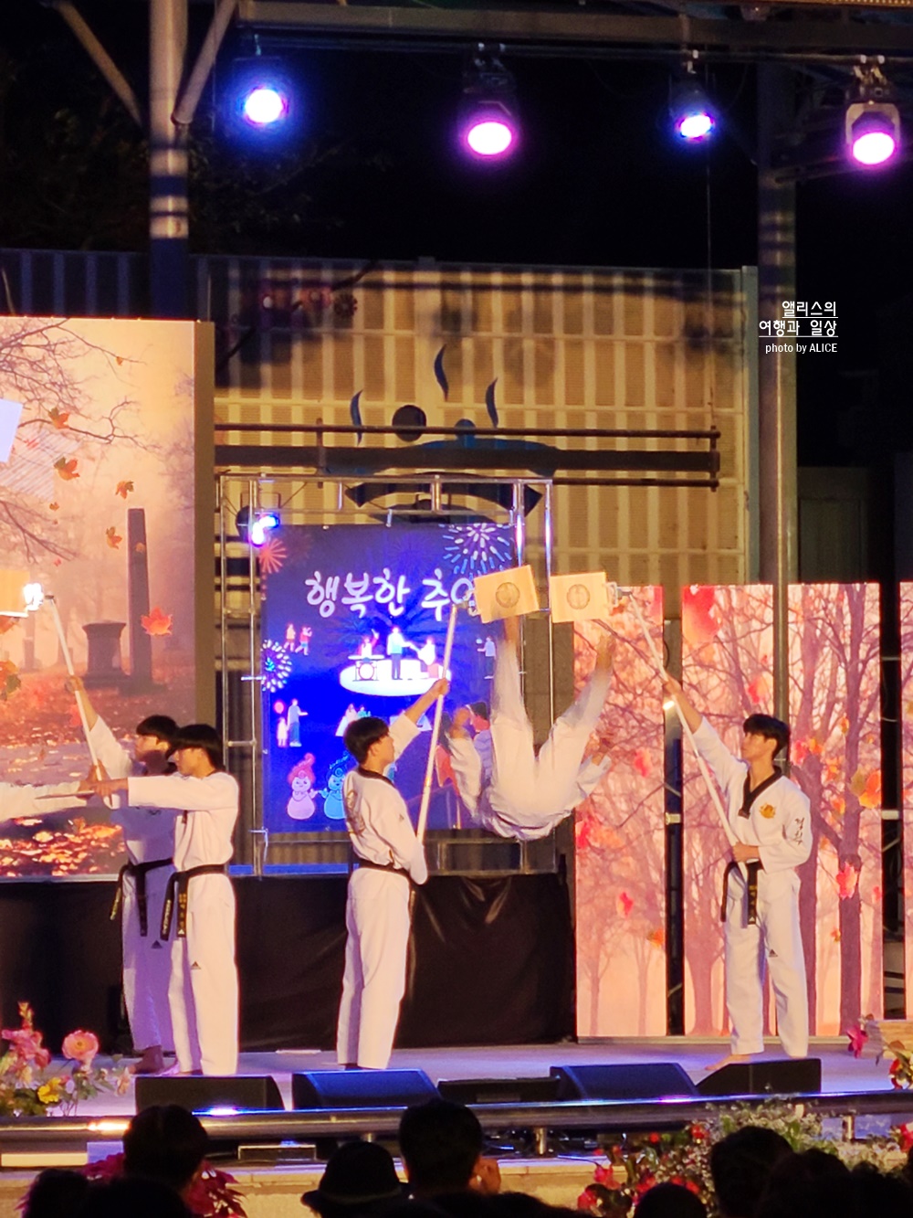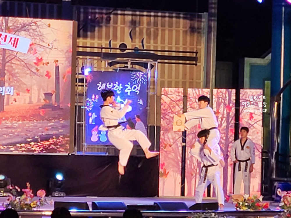 태권도 시범단에 대한 사람들의 응원은 굉장히 크고 반응도 좋았다. 시범단들은 날아다닌다는 표현이 딱 맞을 정도로 정말 격파하면서 날아다녔다. 격파되기 전 함성소리, 그리고 격파 후 사람들의 함성소리. 비장한 시범단의 표정등 모두 멋있고 재미나고 즐거웠다.