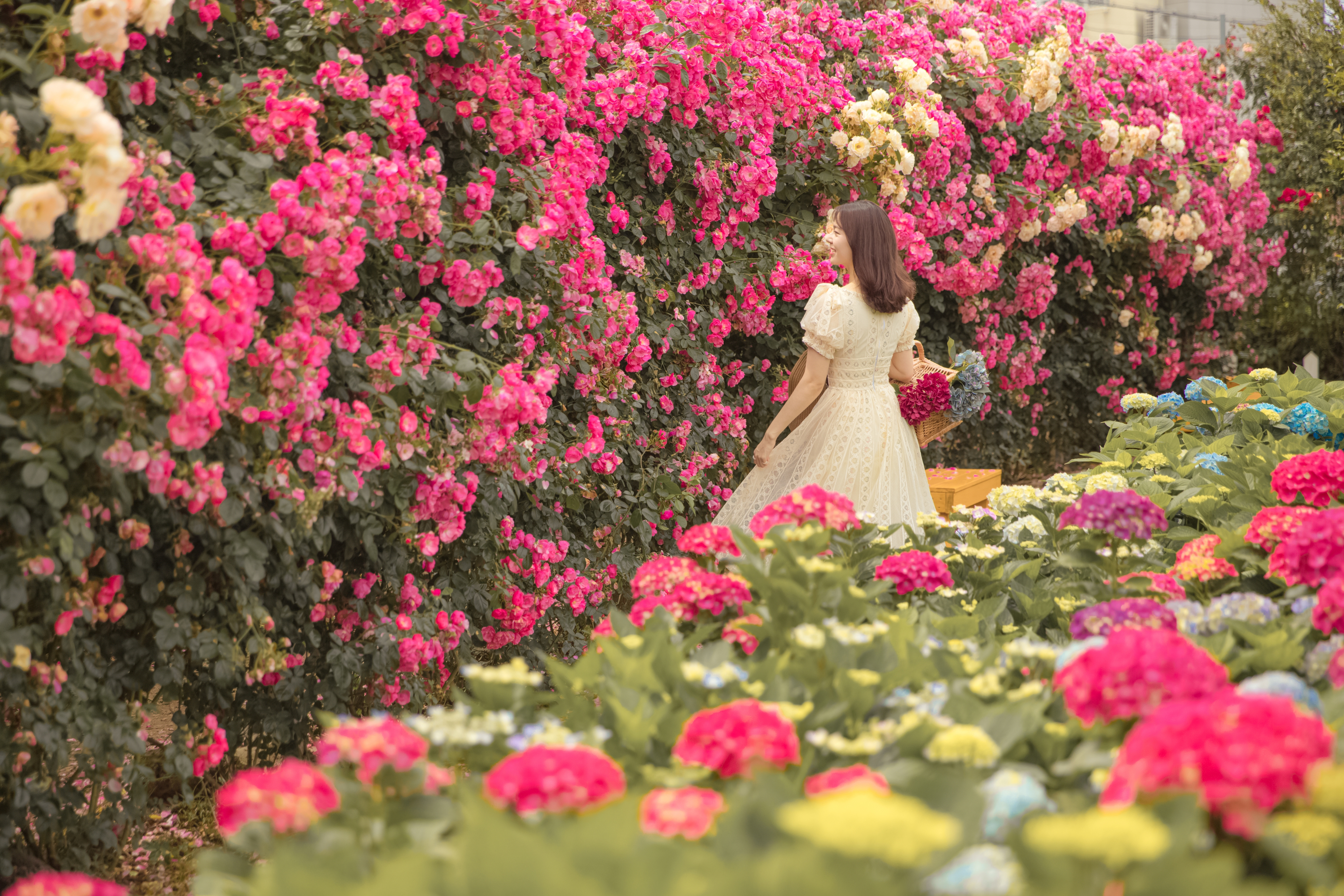 봄에는 덩굴장미, 초여름엔 수국, 가을이면 제주바람에 핑크 뮬리가 핑크빛 파도처럼 일렁이고 겨울엔 동백꽃이 피어나는 곳이다.