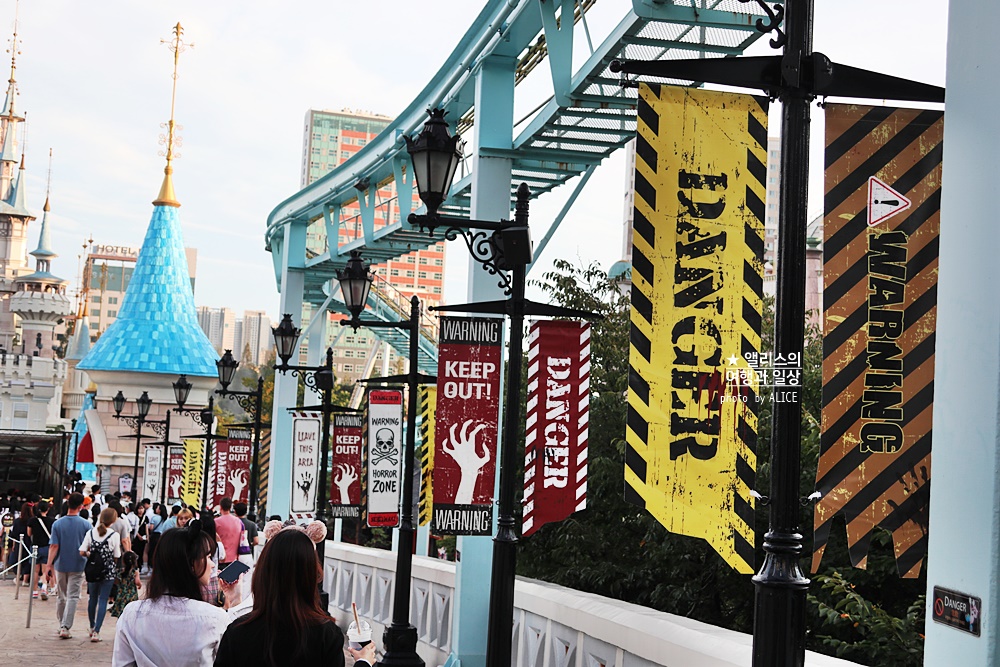 꼭 어트랙션을 탑승하지 않아도 좋았다. 분위기도 좋았고 사람들 분장 구경하는 재미도 있었다. 시시각각 다양한 공연 프로그램 덕분에 구경할 거리도 많았다. 좀비가 나타나면 사람들의 반응이 확연이 좋았고 다들 충분히 즐기는 분위기였다. 너무 어린아이들만 아니라면 같이 즐길 수 있는 프로그램이지 않을까 싶다.