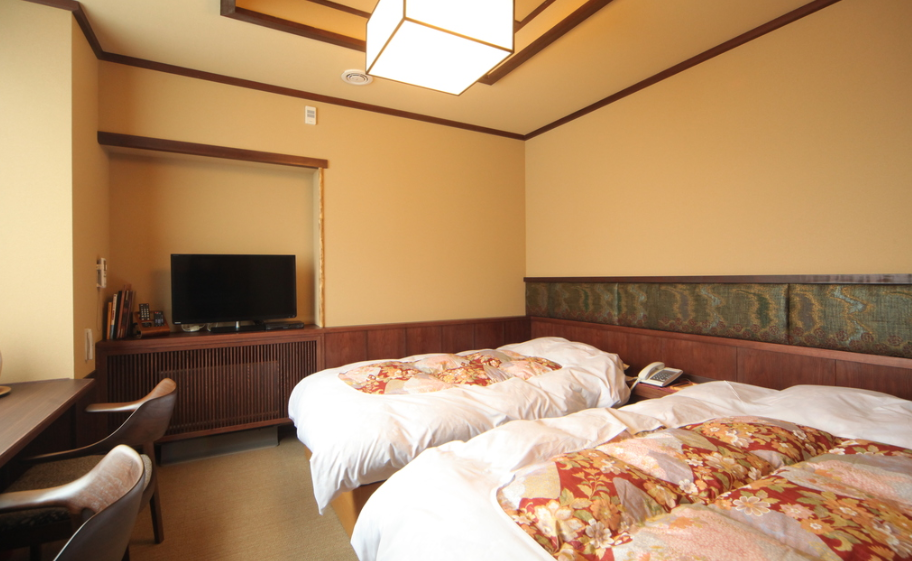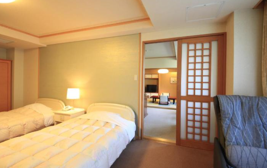 다다미가 깔린 고요한 객실에 TV, 미니 냉장고, 차 및 커피 메이커, 전통적인 좌식 테이블이 갖춰져 있고, 이불 또는 노천 온천수 욕조가 있는 객실도 있다.