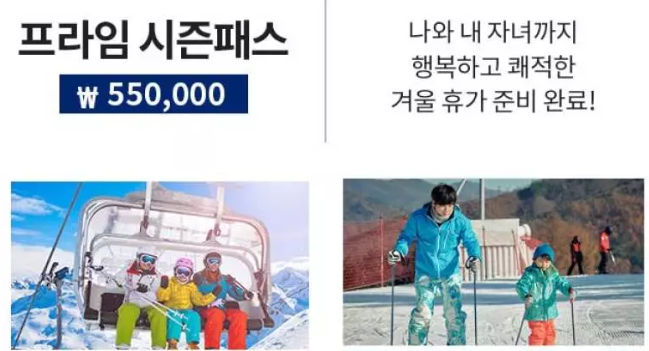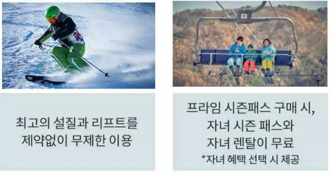 · 혜택: 자녀(2004년 1월 1일 이후 출생자) 1인 시즌패스+장비 렌탈