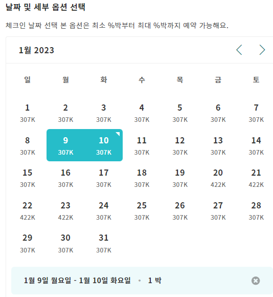 · 투숙 가능 기간(체크인 가능): 2022년 12월 21일 ~ 2023년 03월 31일까지
