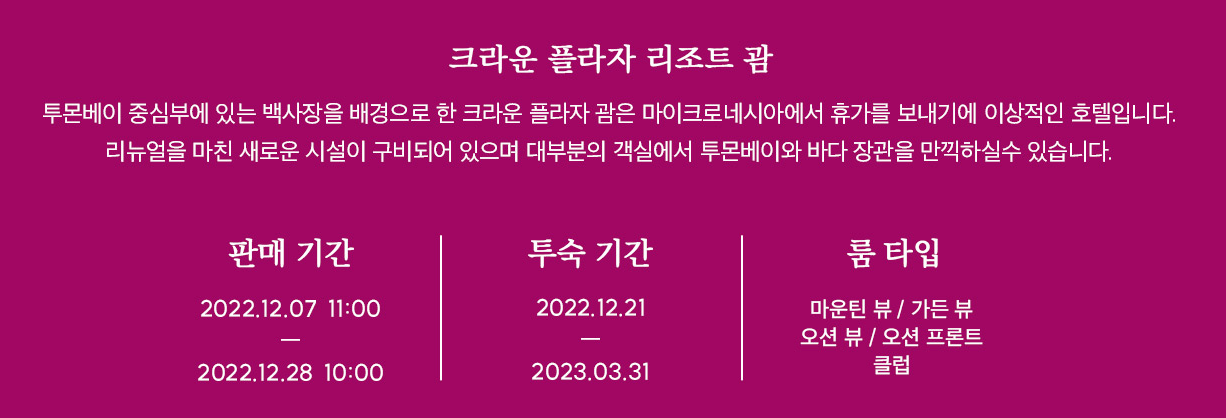 " 크라운 플라자 리조트 괌 호텔 프로모션 "
