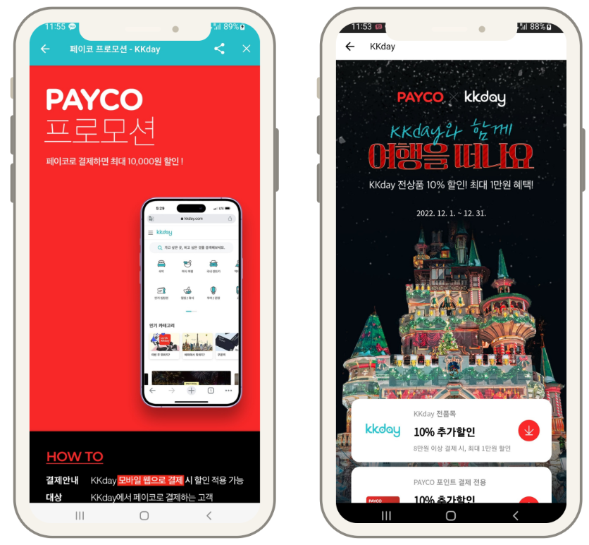 ② kkday에서 할인 적용시 모바일 웹페이지 또는 PC로 적용