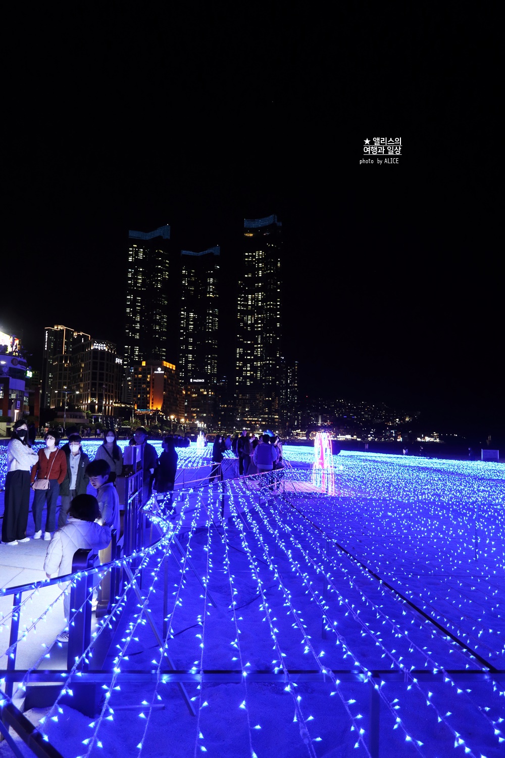 어두운 해운대 앞바다에서 화려하게 빛나는 불빛의 향연은 꽤나 아름다웠다. 백사장에서 진행되는 환상적인 빛의 파도와 거리마다 위치한 아름다운 빛의 조형물들을 볼 수 있는 것도 특징!