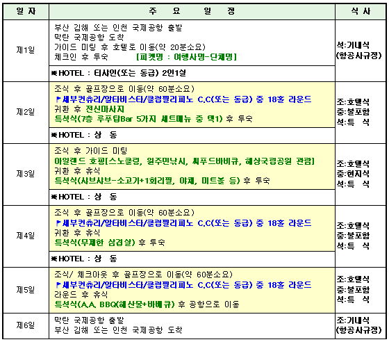 ※ 상기일정은 항공사정 및 기상악화 또는 현지사정으로 인해 일정이 변동되거나 대체일정으로 변경 진행될 수 있다.