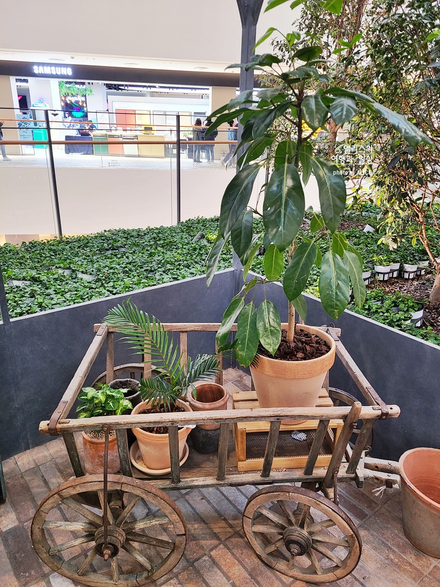 실내지만 자연채광이 들어와서인지 식물들 관리가 정말 잘되고 있었다. 그리고 곳곳에 정원관리 소품등이 있어서 사진 찍는 맛도 있는 곳. 덕분에 항상 사운즈 포레스트는 인증사진을 찍는 사람들이 붐비는 곳이기도 하다. 그러나 웬만큼 붐벼도 복잡하지 않은 이유는 유모차가 동시에 8대가 돌아다녀도 여유로운 넓은 (무려 1천 평) 공간이라서 가능한 일이다.