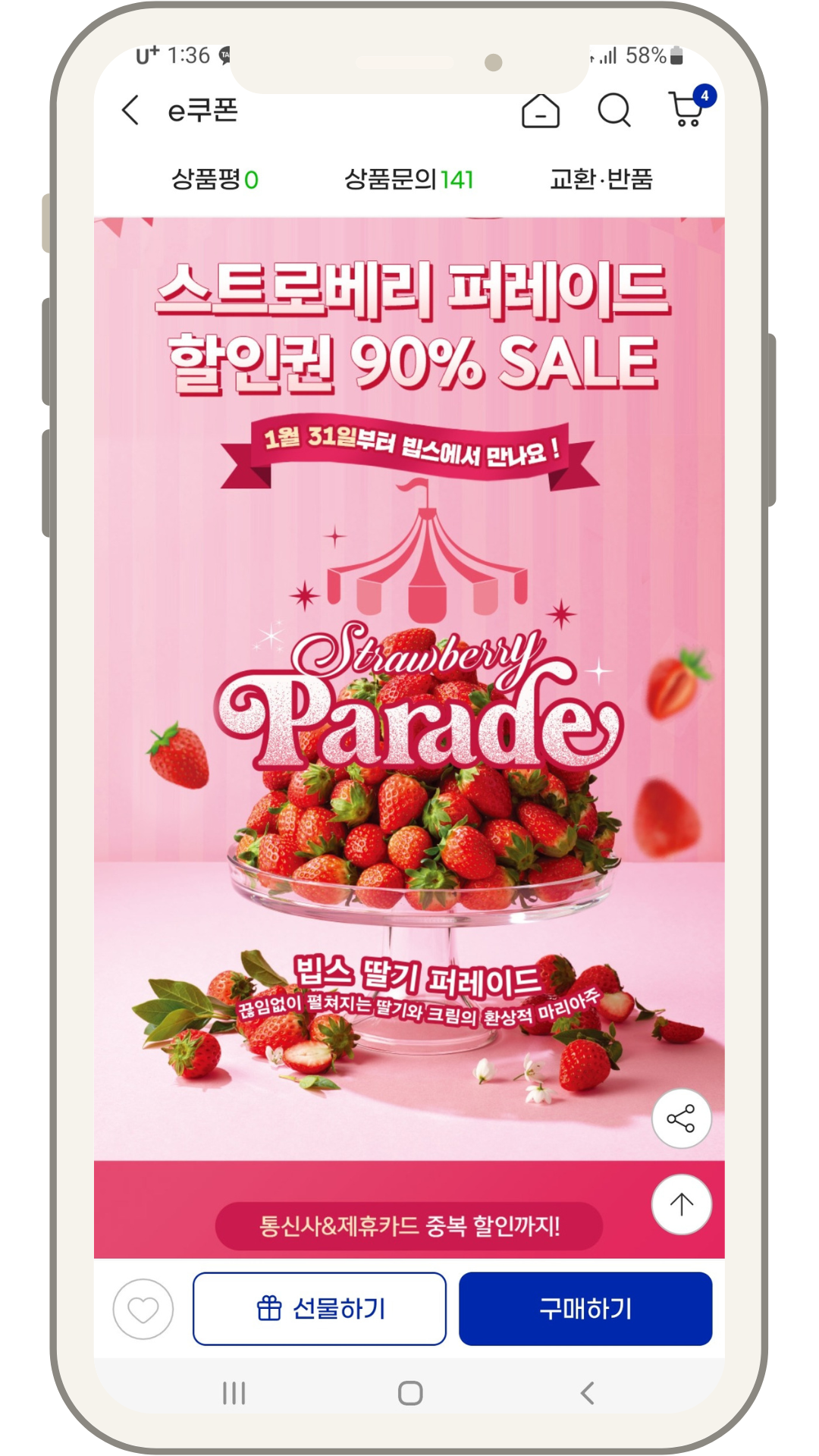 2. 빕스 딸기 퍼레이드 90% 할인권 구매방법