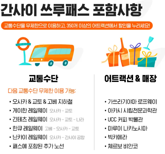 · 간사이 지방 내 열차, 지하철, 버스 무제한 탑승