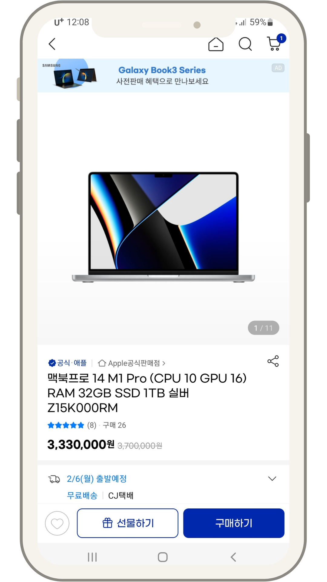 결국 맥북 프로로 결론을 내리게 되었다. (삼성이며 LG그램이며 다 따져봤는데 이것저것 조언을 들어보고 매장에서 확인해보니 결국.. 사과농장을 시작해보기로) 애플 매장은 두 군데(명동) 둘러봤으며 현재 M2가 출시 예정이다보니 M1은 급격히 가성비 라인으로 접어들만큼 제법 할인된 가격이었
