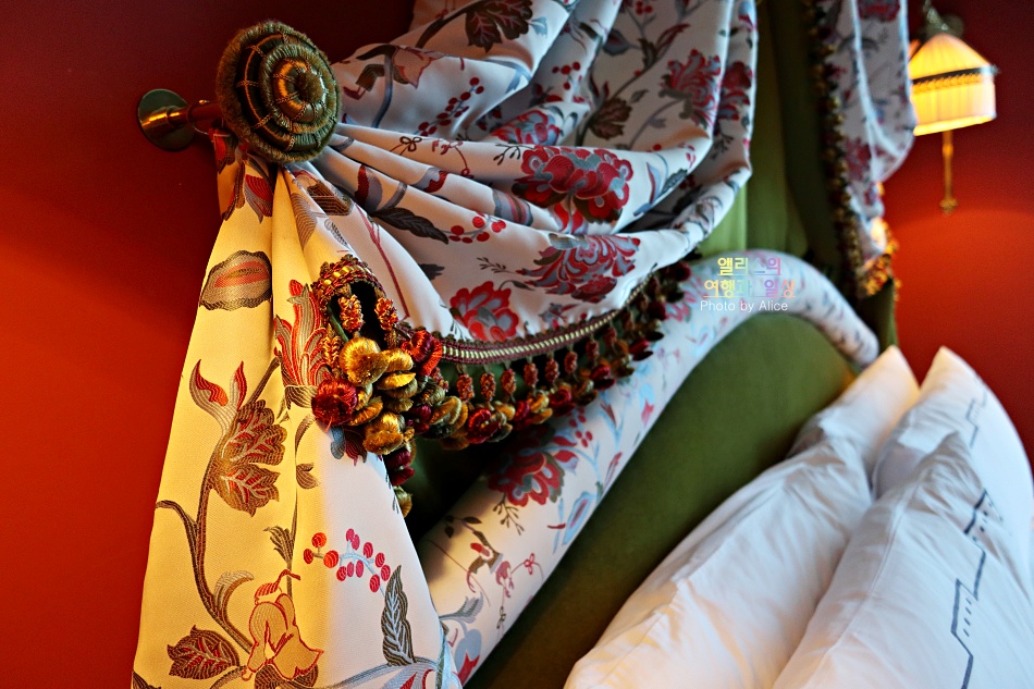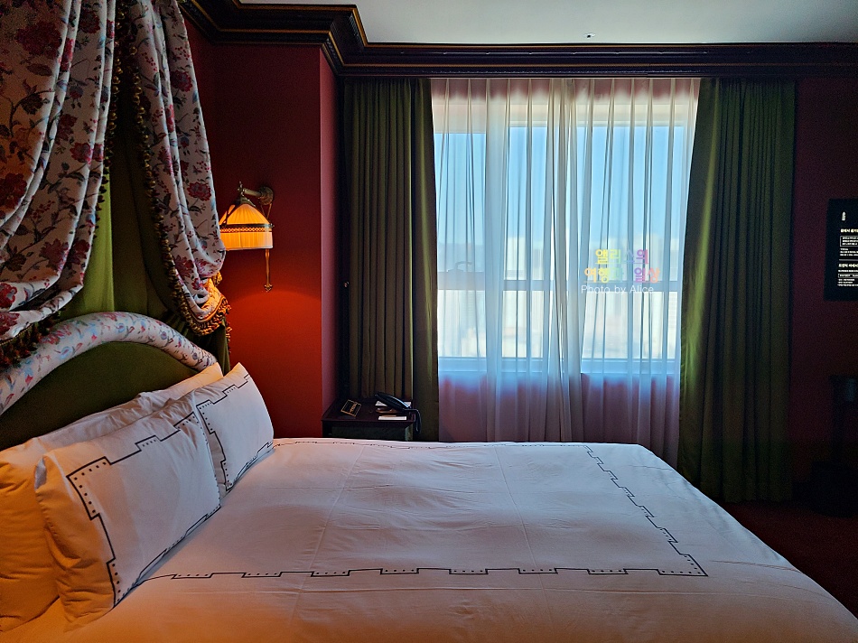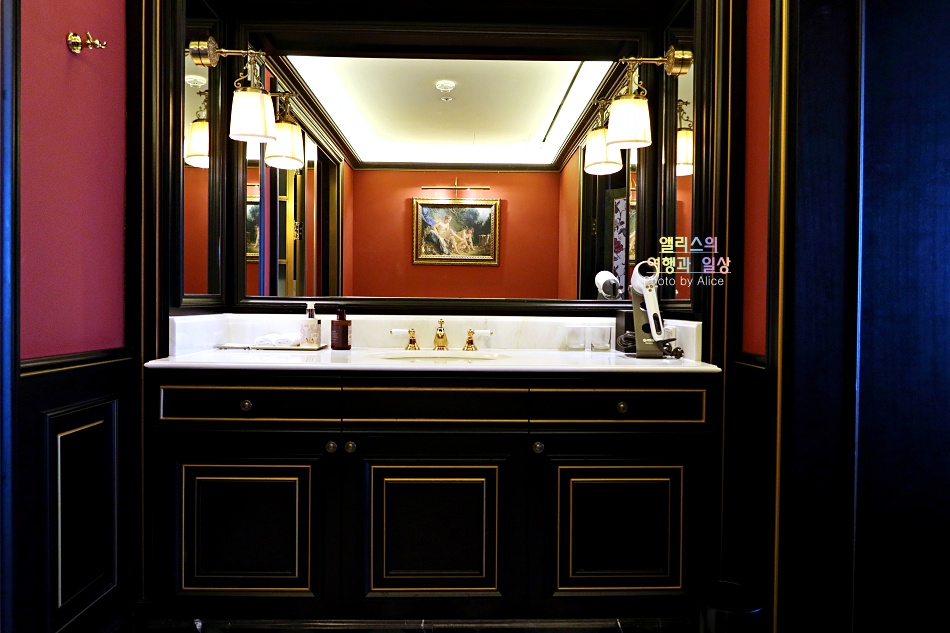 화려한 호텔이라고는 이미 알고 있었지만 객실에 들어섰을 때 그 화려함의 첫인상은 무척이나 놀라웠다. 사진으로도 다 담을 수 없는 화려한 느낌 그 자체. 놀라웠고 신기했고 재미있었다. 유럽 어느 고성에서 볼 법한 공주풍 객실 아니던가. 그렇다고 딱히 촌스럽지도 않았다. 세련되게 화려함 그 자체. 이런 느낌의 호텔은 국내 유일 레스케이프에서만 경험할 수 있는 것이 아닐까 싶다.