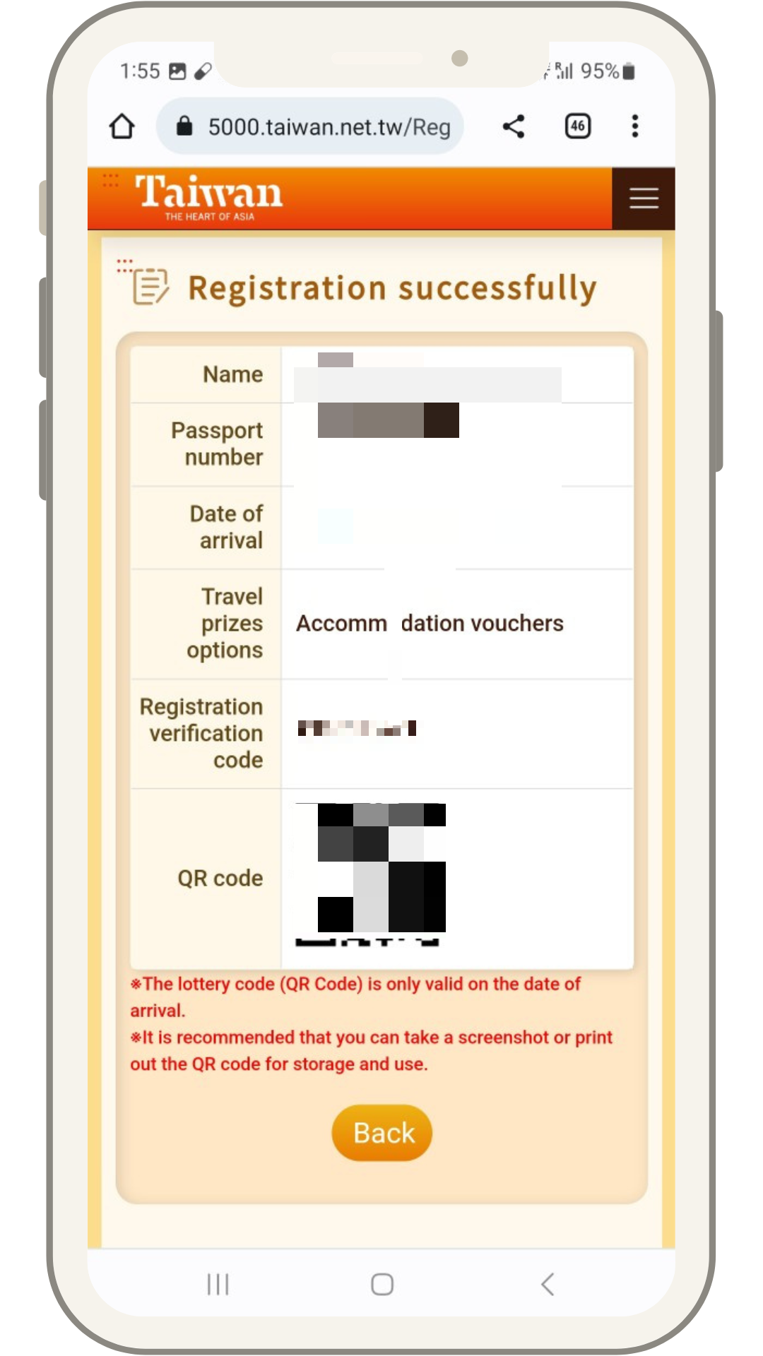 ⑤ 지원금 신청방법: 대만 입국 전에 여기 클릭 후 해당정보 등록 후 QR코드 수령 (당첨자 본인만 사용 가능)
