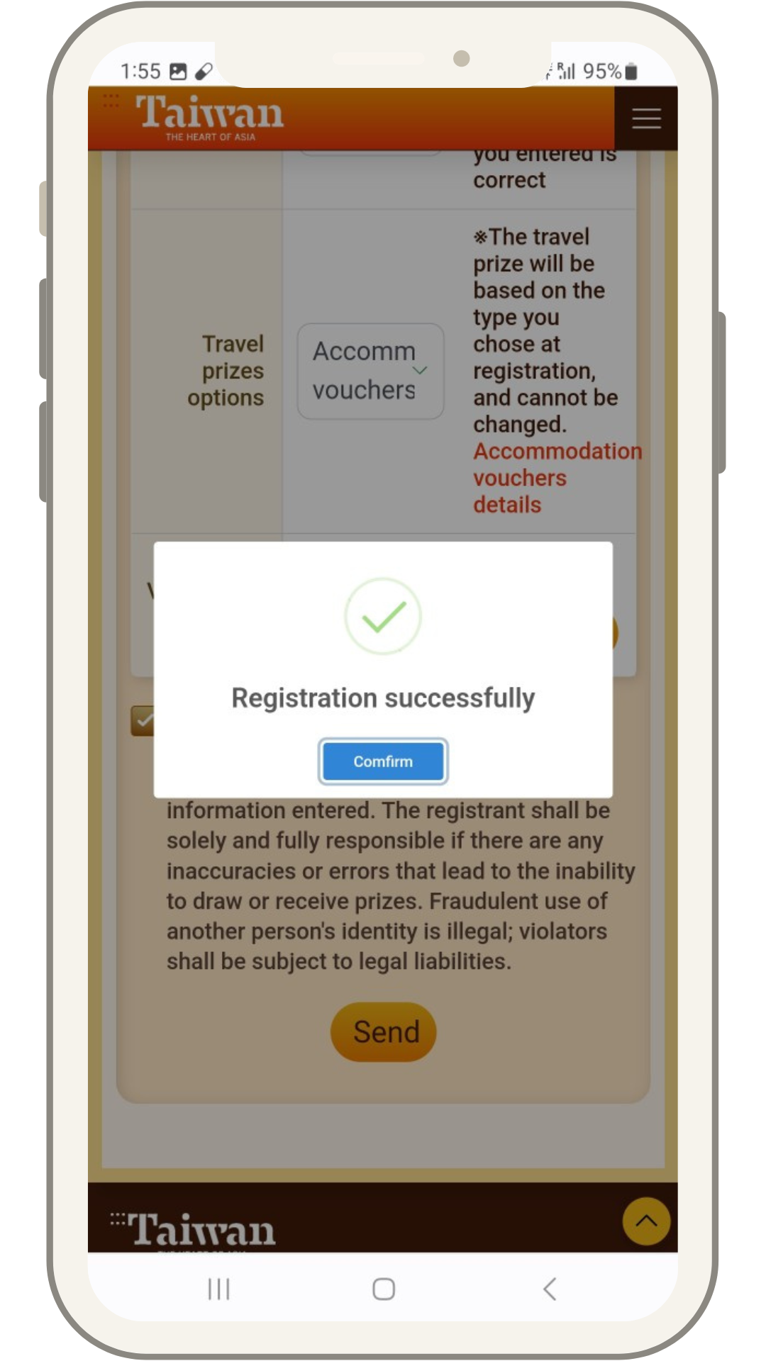 ⑥ 지원금 수령 방법: 신청 시 “전자 바우처” 또는 “숙박할인쿠폰“을 선택하여야 하며 대만관광청에서 지정하는 공항 또는 카운터에서 관련 증빙 서류 제출하면 수령가능하다.