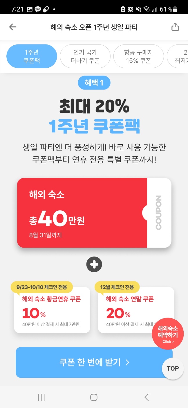 : 최대 10% 할인쿠폰/ 총 40만원 할인쿠폰팩 + 해외숙소 10% & 20% 할인쿠폰