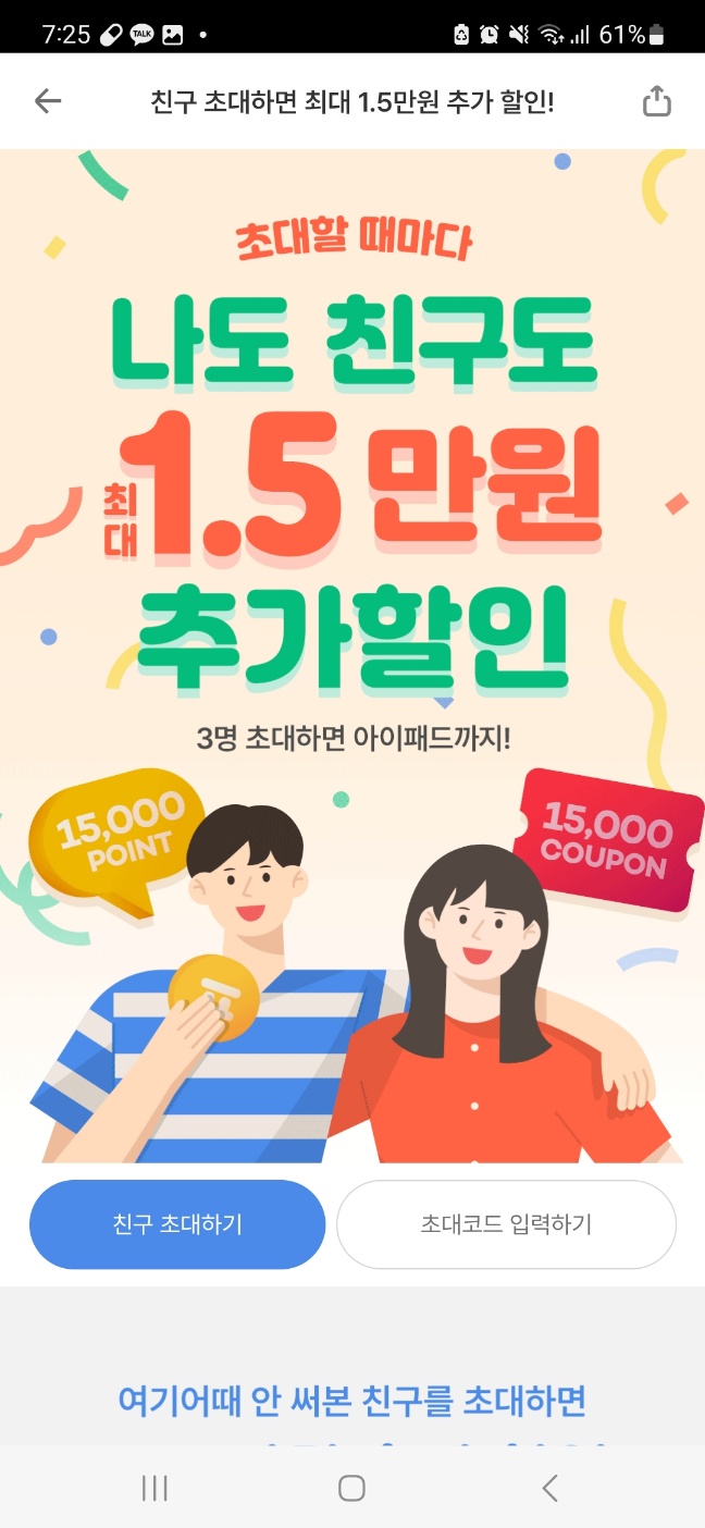 · 사용 기간: 친구초대 링크를 통해서 발급받은 쿠폰은 60일까지 사용가능 (* 타 쿠폰 중복 사용가능)
