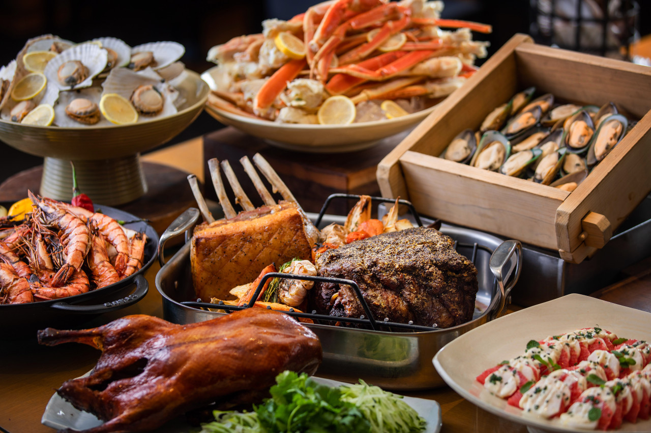 셰프가 직접 라이브 스테이션, 그릴 라이브 스테이션과 라이브 디저트 섹션에는 셰프가 상주하며, 데판야끼, 스테이크, 파스타 등의 메인 메뉴를 포함한 다채로운 디저트를 선보인다.