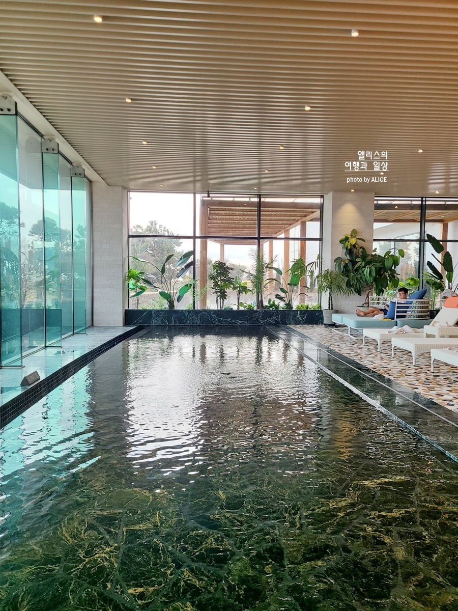 푸른 파도 소리와 함께 따뜻한 온천수를 충분히 경험할 수 있는 공간들은 독특한 구조를 가지고 있고 워터하우스를 이용하면 인피니티풀도 이용이 가능하다. 풀사이드바는 중간에 간식을 먹을 수 있어 편리하고 잘 꾸며진 실내 공간인데도 젖은 옷에 이용 가능하다.