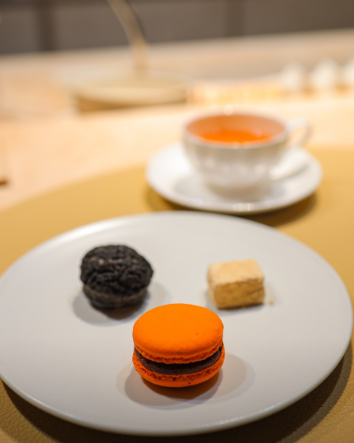 자리 맞은편에는 티 바가 운영되어 티 소믈리에가 다기를 데우고 차를 우리는 모습을 감상할 수도 있다.