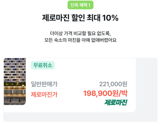 마이리얼트립의 가장 큰 장점이 바로 제로마진이다. 보통 할인쿠폰이 있다고 해도 등록된 숙박 가격이 높으면 할인쿠폰의 할인율이 실상 낮은 효과를 볼 수 밖에 없는데, 마이리얼트립에서는 모두 "제로마진"이라 여느곳과 비교해도 대부분 최저가로 예약가능하다. 여기에 추가로 3만원 쿠폰을 사용할 수 있다.