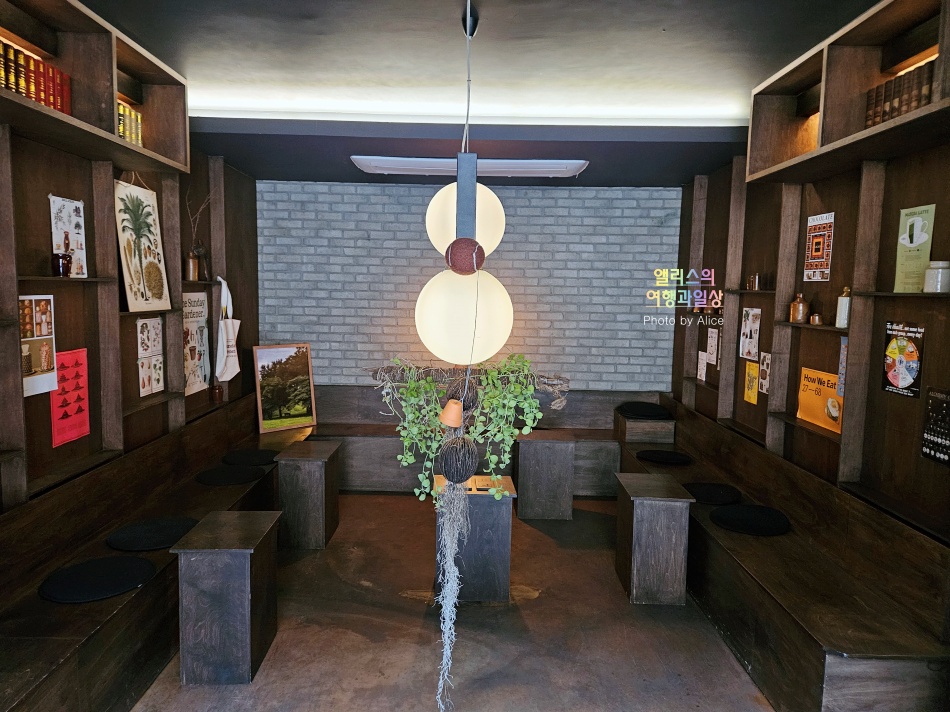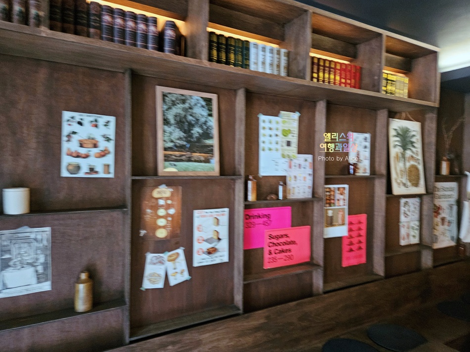 책장을 설명 그 안에 별도의 공간이 있는데 모든 공간이 각 디자인과 인테리어가 다르고 분위기도 다르다. 그래서 원하는 공간을 선택해서 이용할 수 있다.
