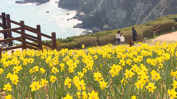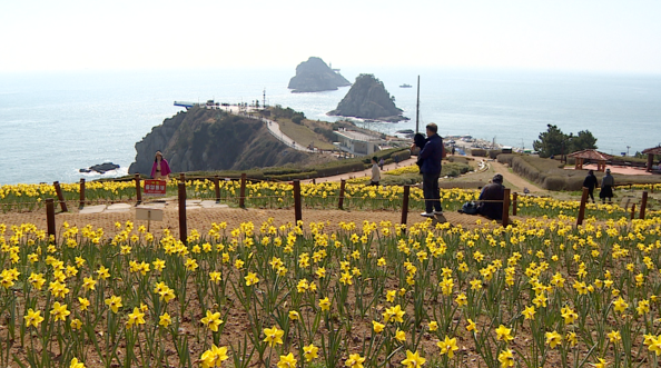 오륙도의 전경과 함께 노란 수선화 언덕을 한눈에 볼 수 있어 싱그러운 봄을 느낄 수 있다. 이기대 수변공원과 데크길로 이어져 산책을 즐기며 꽃구경하기에 완벽한 곳!