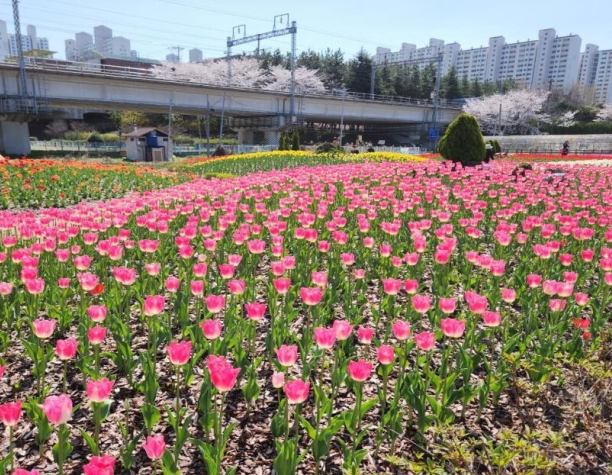 낙동강변을 따라 조성된 화명생태공원에 7만 송이 튤립이 3월20일 현재 활짝피어 관광객을 맞이할 준비가 되었으니 우리는 이 아름다운 튤립을 만나러 가보자~