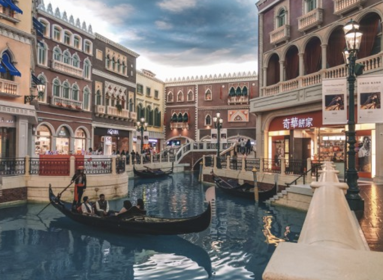 ∙ 베네시안 마카오 리조트: 마카오의 상징과도 같은 베네시안은 이탈리아 베네치아 대운하를 콘셉트로 실내에 운하를 꾸며 놓아 이국적인 분위기를 충분히 느낄 수 있다. 2007년 오픈 이후부터, 2000년에 비해 마카오 관광객 수와 GDP가 2.5배 상승하는 경제적 효과를 불러있을 켰을 정도로 유명한 곳이다.