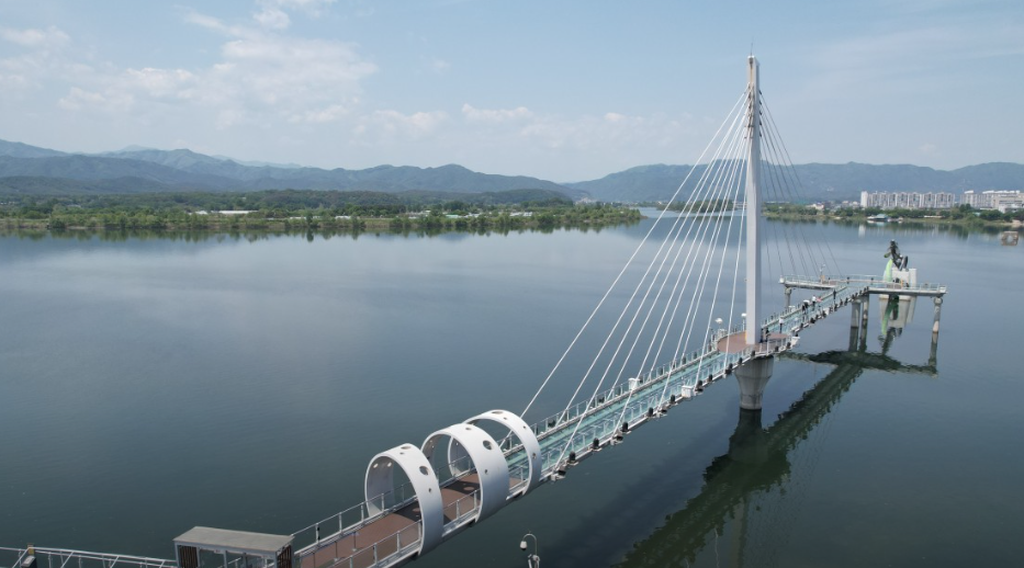 소양강스카이워크는 춘천 소양강 위에 설치된 유리 전망대로 짜릿한 체험이 가능한 명소다.