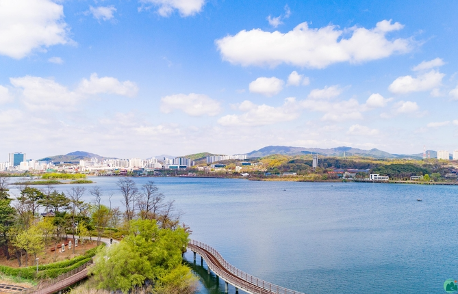 넓은 갈대밭과 수변 생태공원이 조성되어 있어 아이들과 산책하기에 좋다.