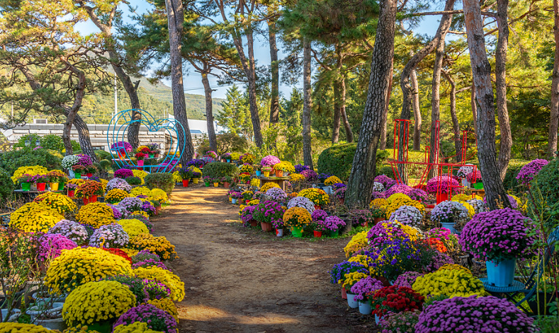 봄에는 튤립, 여름에는 수국, 가을에는 단풍이 유명하다.