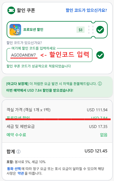 - PC웹, 모바일 웹 사이트에서만 할인코드 적용 가능 (아고다 앱에서 적용 불가)