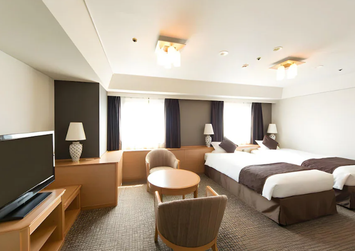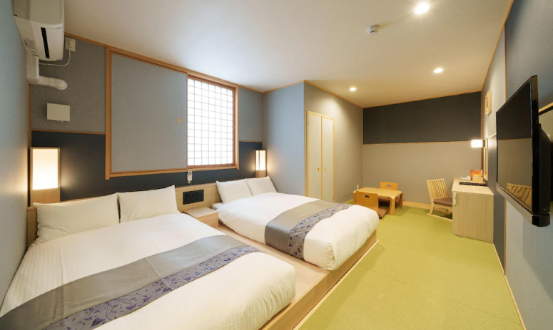 : 일본식 다다미룸, 서양식 트윈 등 다양한 타입이 있다. / 객실은 넓고 청결, 오리털 이불,비데,욕조 등 어메니티 우수하다.