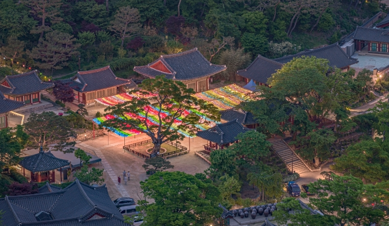 절 안에는 고풍스러운 전각과 울창한 숲이 어우러져 있어 여름철에도 시원하게 산책할 수 있다.