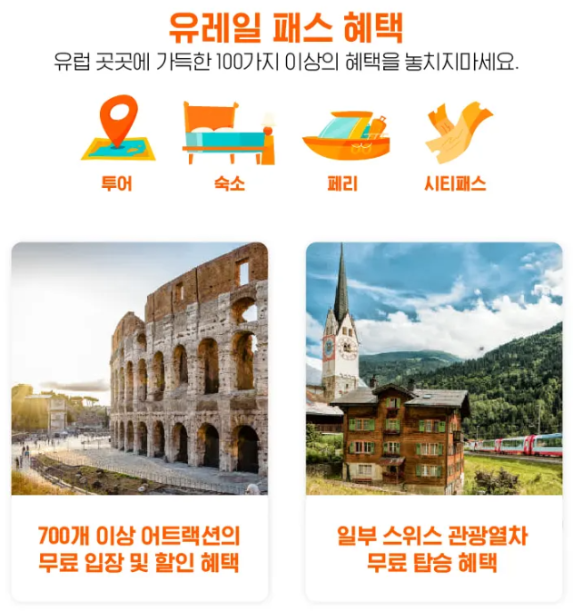 모바일 패스 한 장으로 번거로움 없는 유럽 여행을 하며 이동할 수 있다. 미리 출발 일자를 지정할 필요가 없는 패스로 페리, 호텔, 시티 카드, 입장권 등 풍성하고 다양한 혜택까지 포함되어있어서 유럽여행 필수품으로 분류된다.